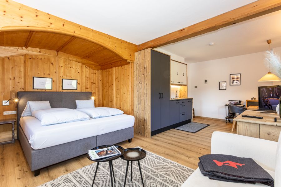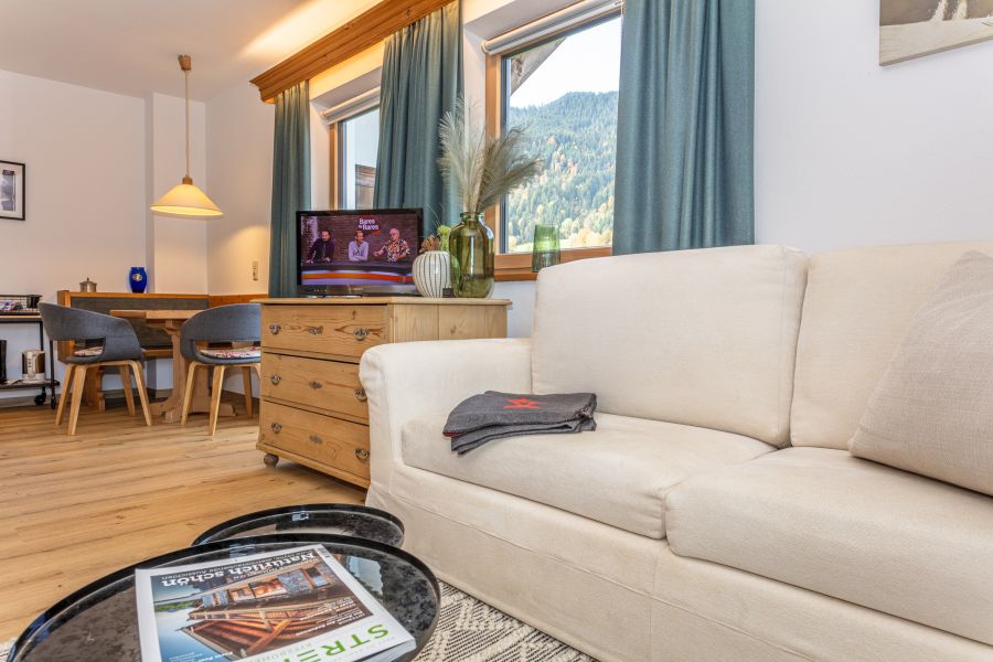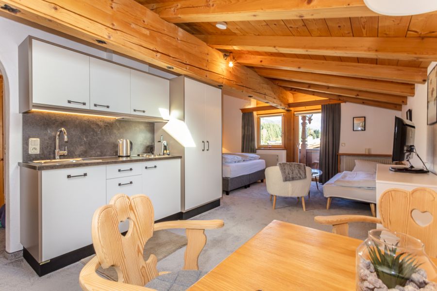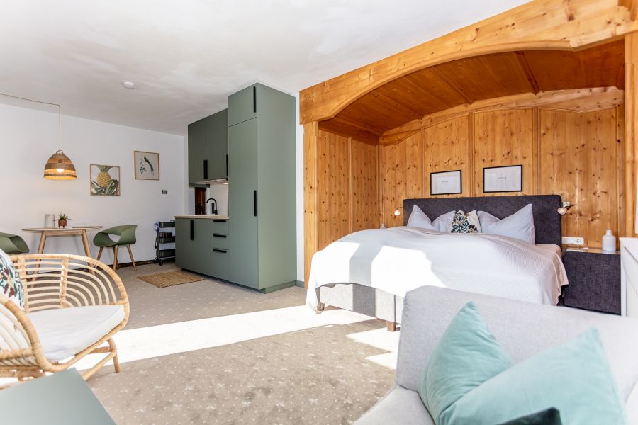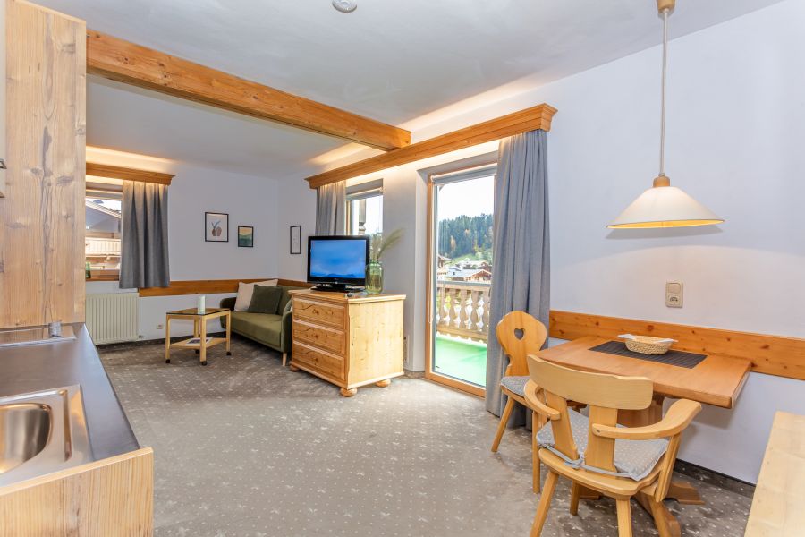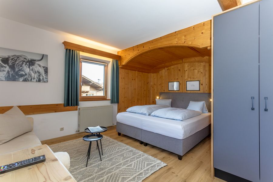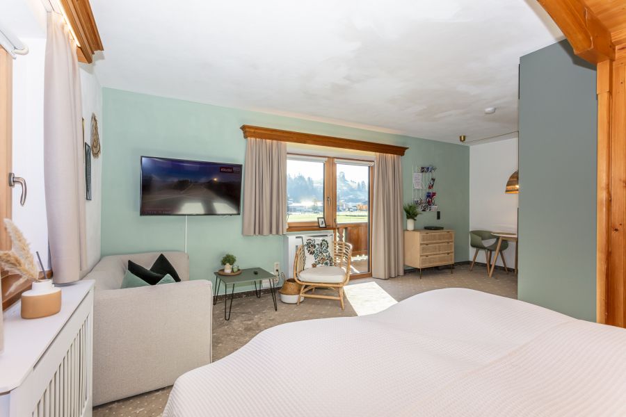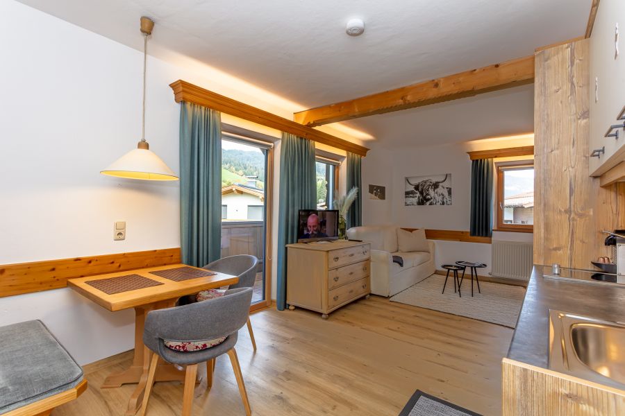 Der Name der Ferienwohnung ist Programm, denn in dieser modernen Ferienwohnung werden Sie sich fühlen wie ein Kaiser. Angefangen von bequemen Betten und einer ausziehbaren Couch bis hin zu einer Kochnische mit Essecke finden Sie hier alles, was Sie für Ihren erholsamen Urlaub in den Kitzbüheler Alpen brauchen. Natürlich befindet sich in der Ferienwohnung auch ein Balkon, auf der Sie gemütliche Stunden mit tollem Ausblick genießen können. Unsere hochwertigen Bio-Möbel runden das Ambiente der Ferienwohnung perfekt ab und sorgen für ein rundum angenehmes Wohngefühl.